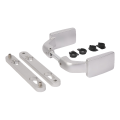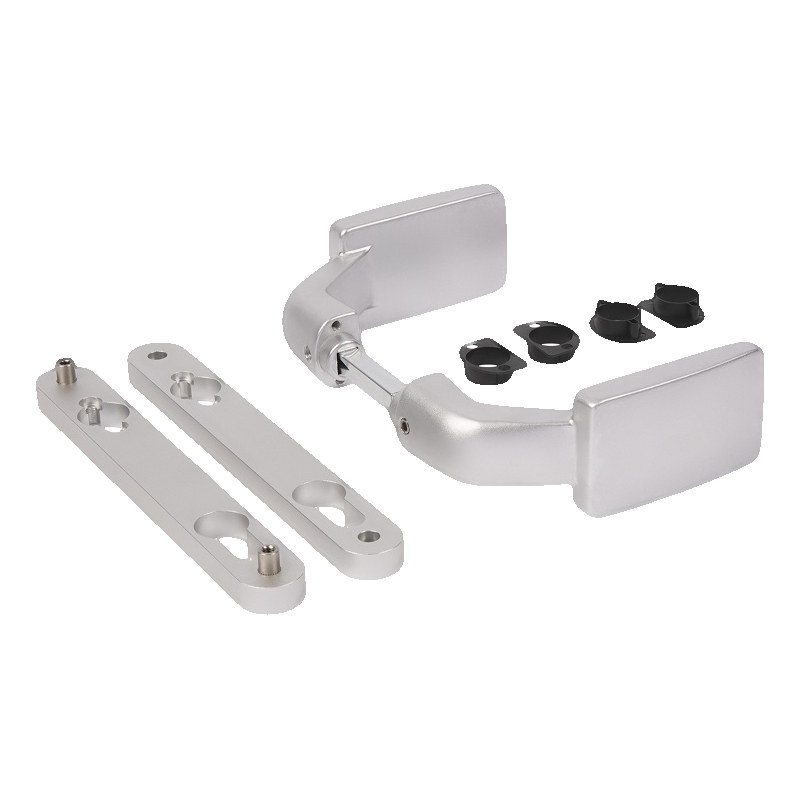 Le kit comprend : une poignée double face avec prise, deux plaques de montage (avec trou pour insert de cylindre et sans), entretoises pour régler l'épaisseur du profilé et vis de fixation. Le kit est prêt au montage sans nécessité de sélectionner des éléments supplémentaires.