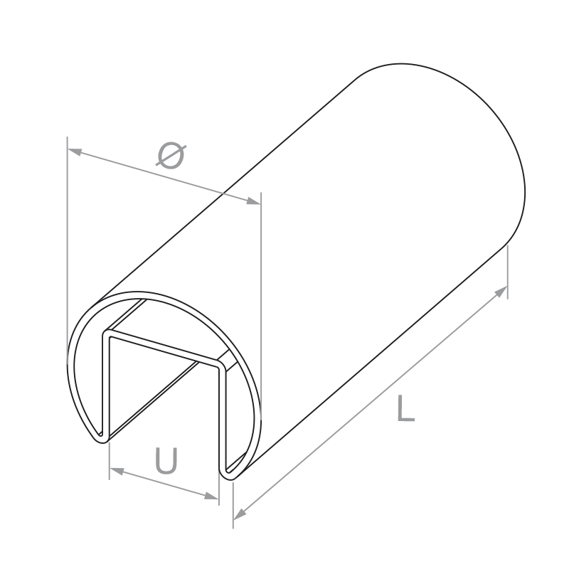 Main courante à clipser sur verre de diamètre Ø 42,4 mm et de longueur 2500 mm — élément de finition prêt pour balustrades tout verre. Conçue pour le montage sur panneaux de verre d'épaisseur de 8 à 21,52 mm, ce qui assure la compatibilité avec la plupart des configurations populaires de verre trempé et feuilleté utilisées dans les balustrades intérieures et extérieures.