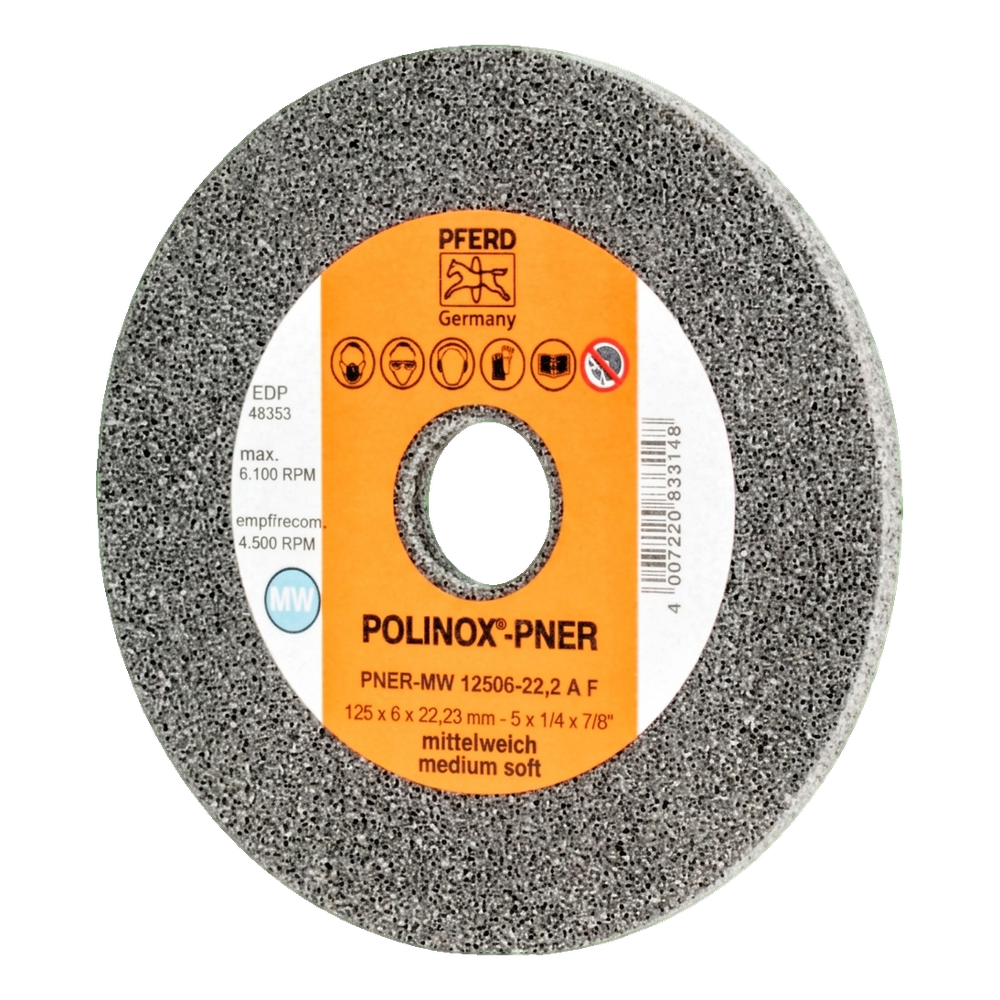Meule compacte PFERD POLINOX-PNER 125 × 6 mm pour meuleuse d'angle – moyennement souple A F