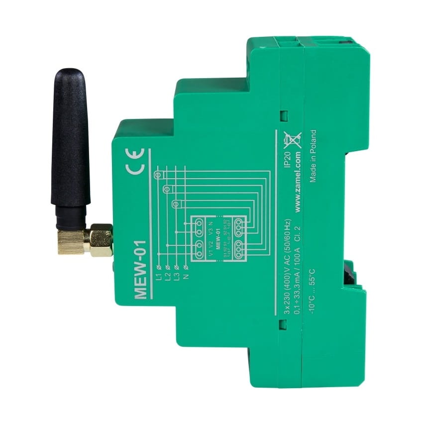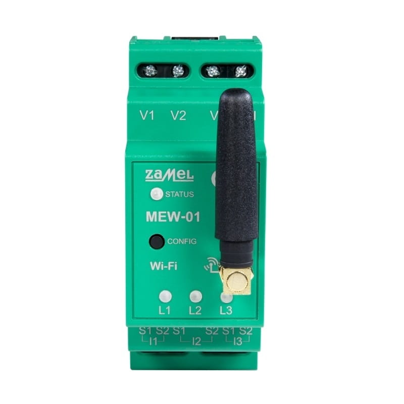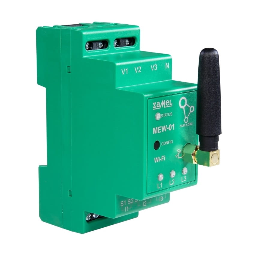 Le moniteur d'énergie électrique WI-FI 3F+N compteur bidirectionnel pour photovoltaïque PV TYPE : MEW-01 SUPLA de la marque ZAMEL permet de surveiller sans fil la consommation d'énergie via le réseau Wi-Fi. Il s'agit d'un appareil triphasé qui s'installe dans le tableau électrique sur rail TH35 (DIN), sans nécessiter d'installations électriques ou de télécommunications spéciales.