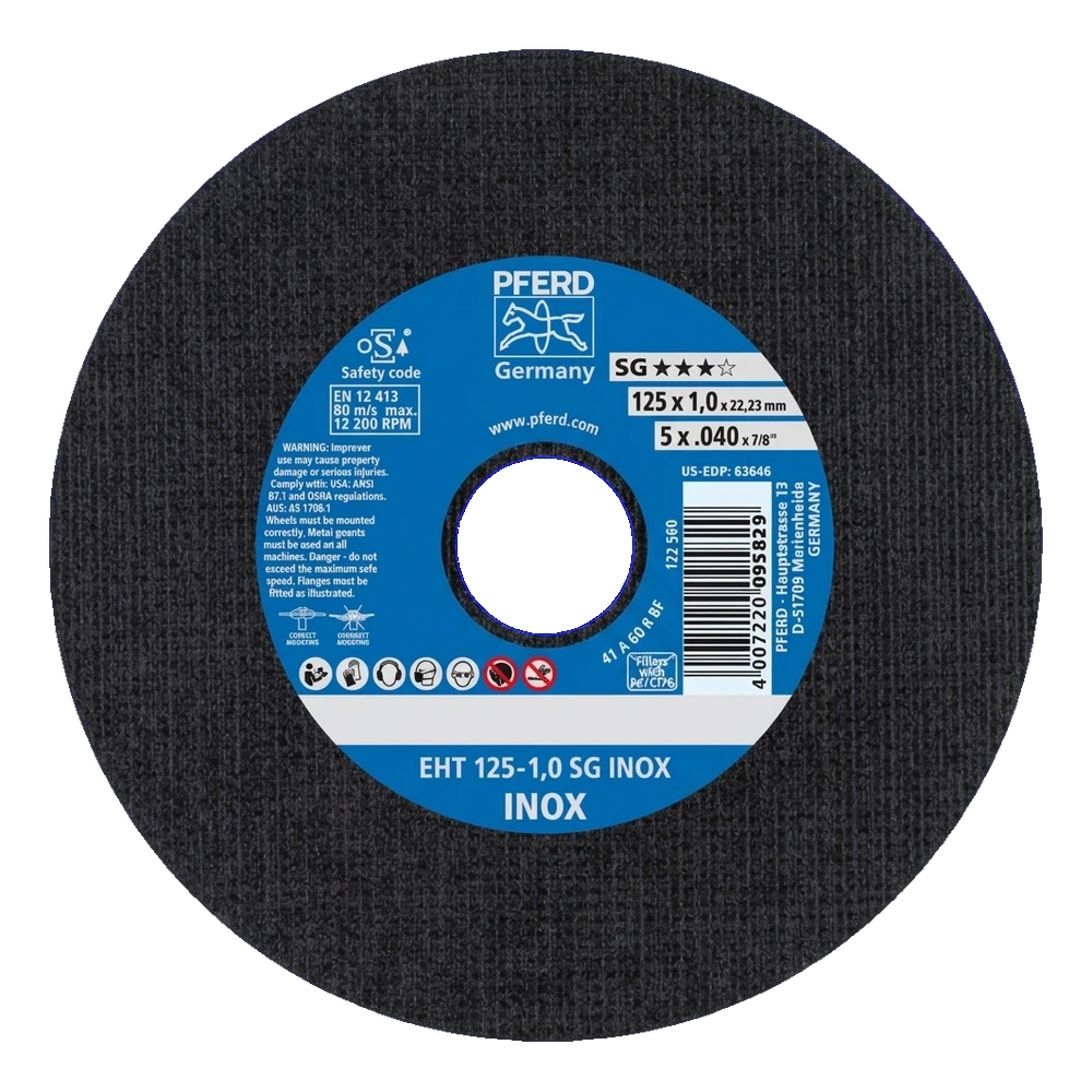PFERD EHT 125-1,0 SG INOX – disque de tronçonnage pour acier et acier inoxydable 125 × 1,0 mm