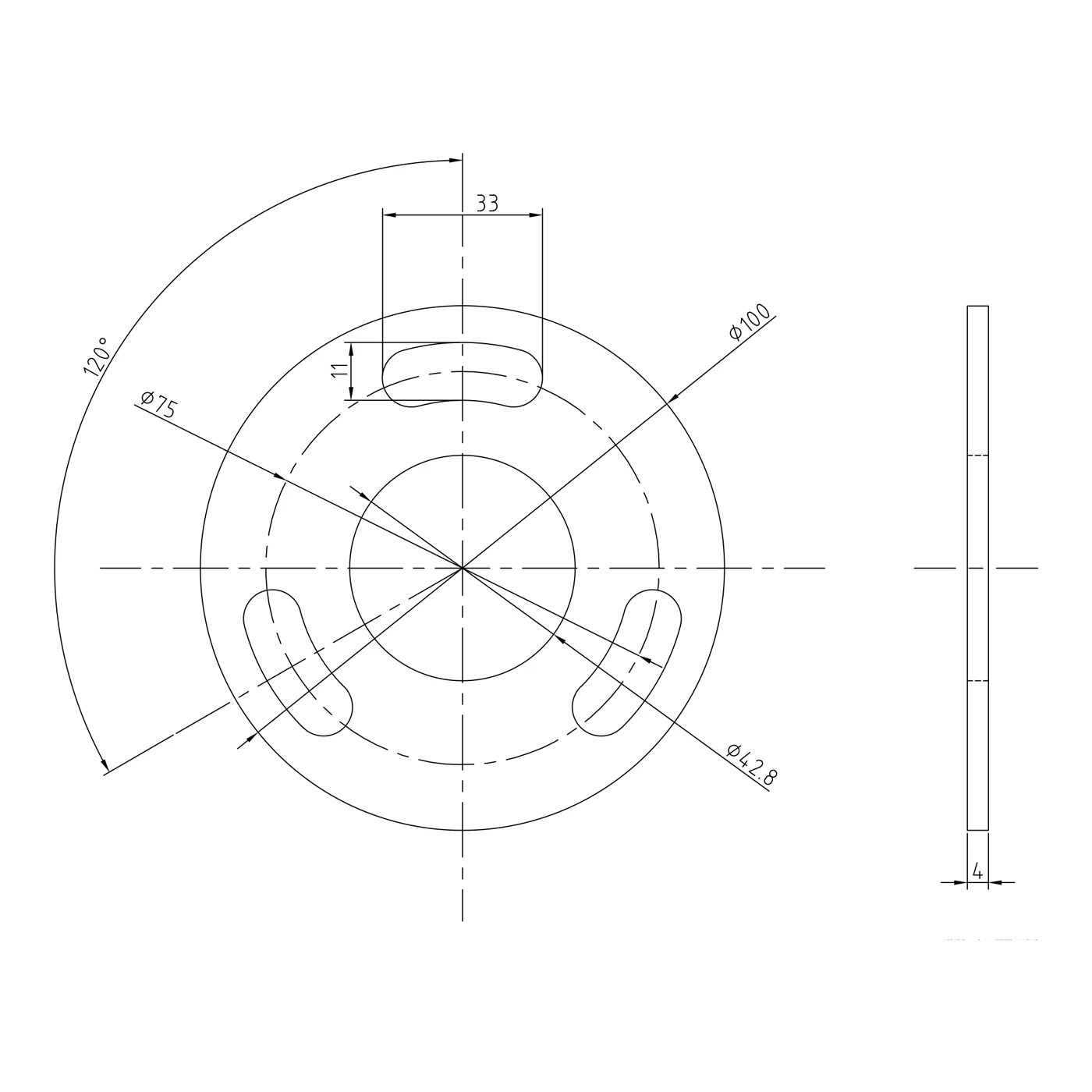 - Dimensions du trou oblong : 33 × 11 mm