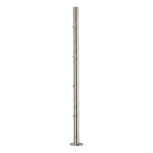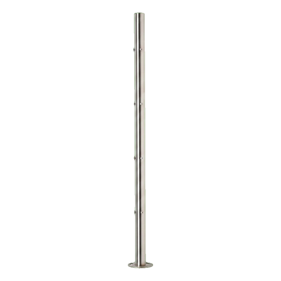 L'acier inoxydable AISI 304 garantit une haute résistance à la corrosion dans des conditions environnementales standard, ce qui rend ce poteau adapté aussi bien aux applications intérieures qu'extérieures dans une certaine mesure (loin de l'environnement marin et fortement agressif chimiquement).