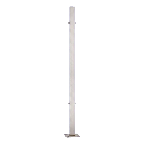 L'acier inoxydable AISI 304 est destiné principalement à une utilisation à l'intérieur des bâtiments. Avec un nettoyage régulier et l'utilisation de produits de protection dédiés, le poteau peut être monté avec succès également à l'extérieur — à l'exception de l'environnement des piscines, des centres aquatiques et des zones exposées à l'action directe du sel marin. La finition satinée facilite l'entretien quotidien et est plus résistante à la visibilité des salissures que la surface polie.