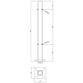 Le poteau est destiné à la fixation directe au sol grâce à la platine de base soudée de dimensions 105×105 mm. Quatre trous de montage ovales (haricots) dans la platine permettent un réglage précis de la position lors de l'installation, ce qui accélère considérablement les travaux de montage et élimine les erreurs.