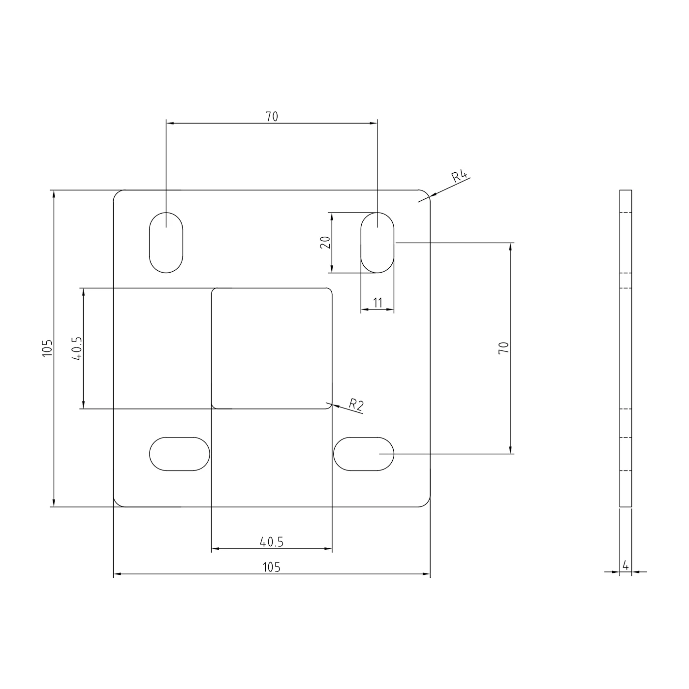 - Arrondi des angles de la platine : R4
