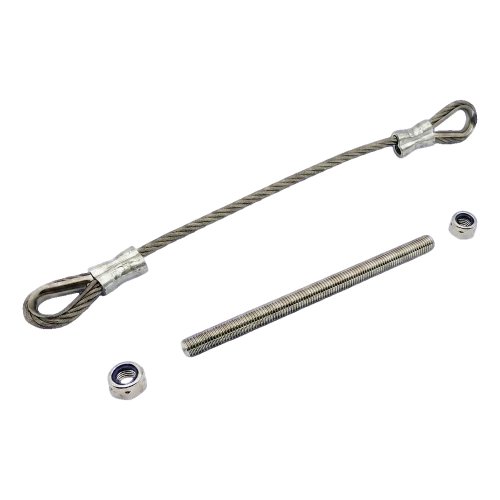 Le câble se monte entre le vantail du portail et le montant de portail — en cas de panne de charnière, le vantail est retenu par le câble et ne tombe pas au sol. La tige filetée M12 d'une longueur de 180 mm permet de faire passer en sécurité la fixation à travers les profilés du portail ou du montant, et les écrous de sécurité empêchent le dévissage spontané de la connexion sous l'effet des vibrations et charges dynamiques. Le kit est universel et convient à la plupart des portails battants disponibles sur le marché.
