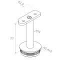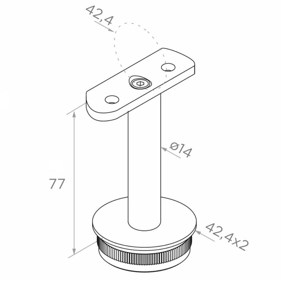 La construction du support est adaptée au système de balustrade 42,4 mm. La partie inférieure avec bord moletée est enfoncée dans le tube du poteau de dimension 42,4 × 2 mm (diamètre extérieur × épaisseur de paroi), et la sellette supérieure avec courbure profilée s'adapte à la main courante de diamètre 42,4 mm. La tige verticale de diamètre ø14 mm assure la rigidité appropriée de l'ensemble de la connexion.