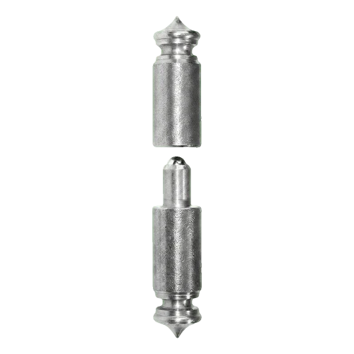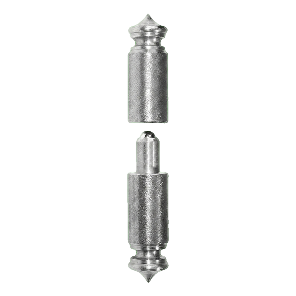 La charnière se compose de deux parties soudées — supérieure (avec bille) et inférieure (avec logement). Avant de souder les éléments à la structure du portail ou au poteau, il faut régler précisément leur position. Une fois le soudage terminé, les deux parties se connectent en posant l'une sur l'autre, créant une construction rotative stable et durable.