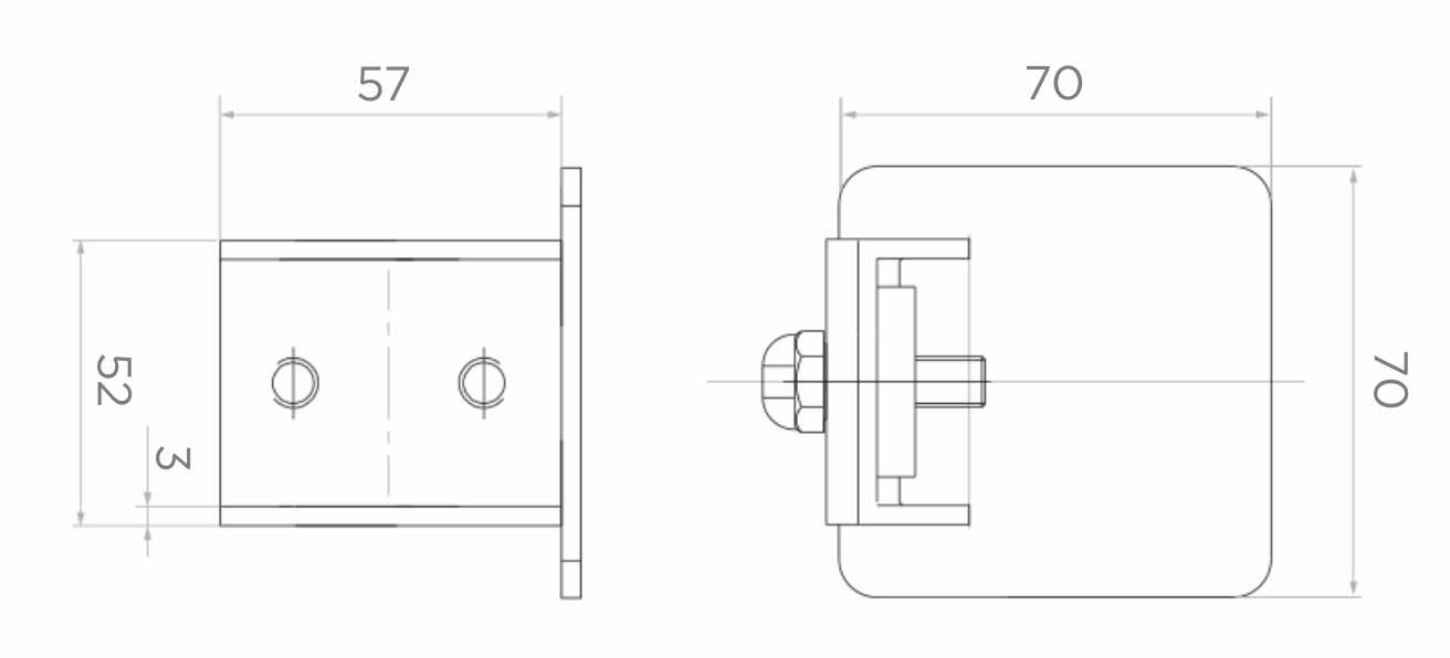 - Profondeur de montage (longueur insérée dans le profil) : 57 mm