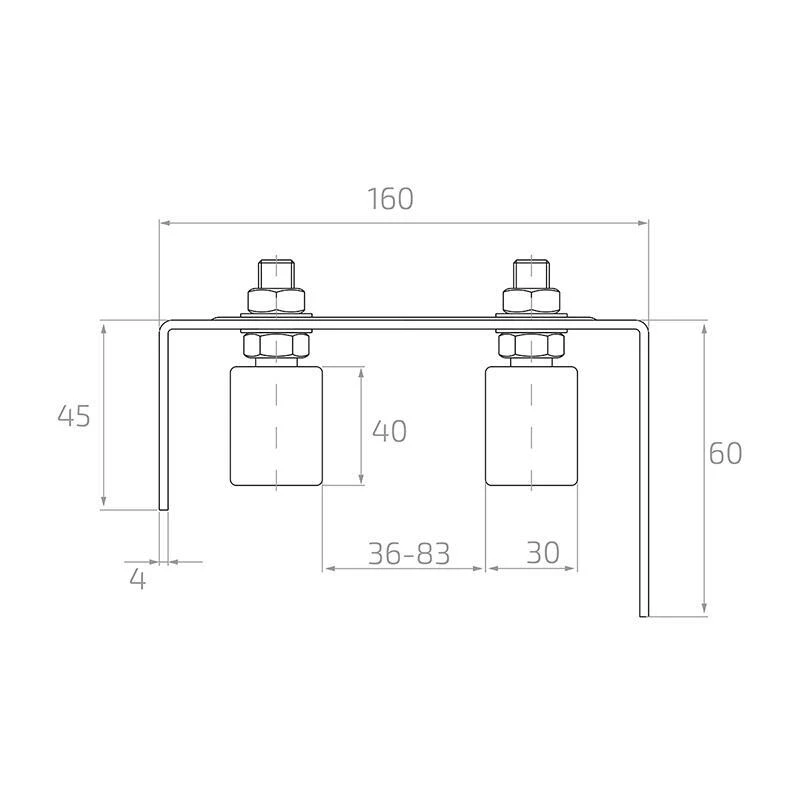 Le guidage supérieur PSG est un élément indispensable de toute installation de portail coulissant. Les galets en matière plastique se caractérisent par une haute résistance à l'usure, ce qui se traduit par une longue durée d'exploitation sans nécessité de remplacement. L'entraxe réglable des galets permet un ajustement rapide au profilé spécifique du portail dès l'étape de montage, éliminant le besoin d'utiliser des cales d'espacement supplémentaires. Les trous oblongs dans la plaque de montage permettent une correction du réglage vertical, ce qui est particulièrement utile en cas d'irrégularités du poteau ou du mur.