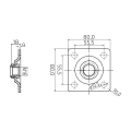 La plaque se monte à l'aide de quatre vis (dans les trous de diamètre ø10,5 mm) directement sur le poteau de portail ou le cadre de construction. L'entraxe des trous 55,5 × 55,5 mm permet une répartition stable des forces sur toute la surface de liaison. Dans l'écrou central se visse la tige de la charnière réglable avec filetage M16, ce qui permet un réglage précis de la position du battant de portail après montage.