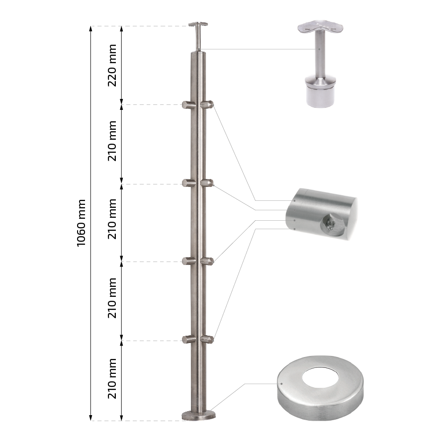 - Hauteur du poteau : 1060 mm