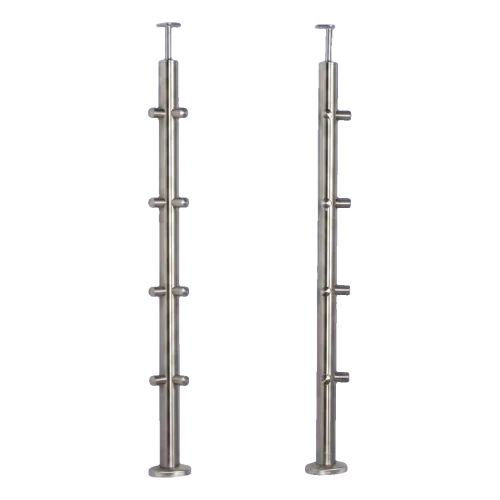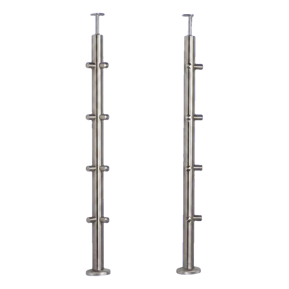 Le poteau de balustrade d'angle PSG en acier inoxydable brossé AISI 304 est une base solide et esthétique pour les balustrades modernes de balcons et d'escaliers. Grâce à sa construction d'angle avec 8 supports (4 de chaque côté) destinés aux tubes de remplissage ø 12 mm, le poteau constitue un point d'angle complet du système de balustrade ø 42,4 mm. Le montage au sol assure la stabilité, et la finition satinée donne à l'ensemble un aspect élégant et professionnel.