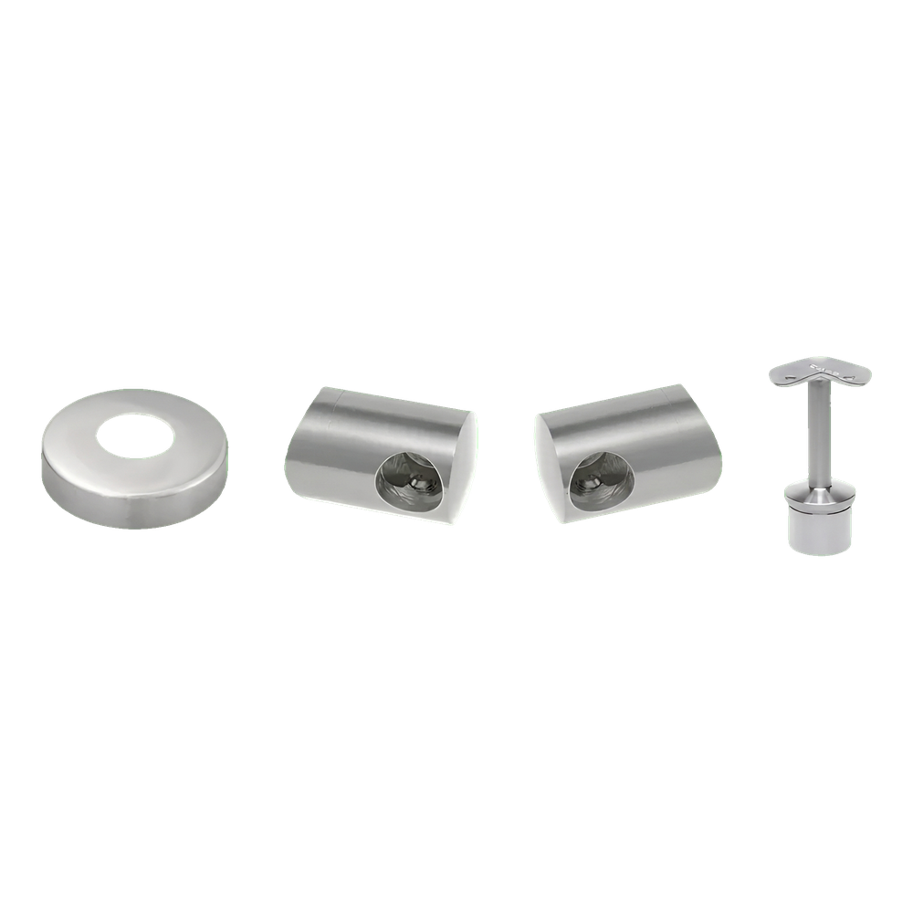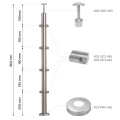 Les raccords et fixations de main courante inclus dans l'ensemble ne sont pas montés en permanence — il est recommandé de les coller avec de la colle anaérobie pour acier inoxydable. Ainsi, l'installateur a la possibilité de régler et d'adapter le poteau aux conditions du chantier, et si nécessaire — de raccourcir le poteau, par exemple en raison d'irrégularités du sol.