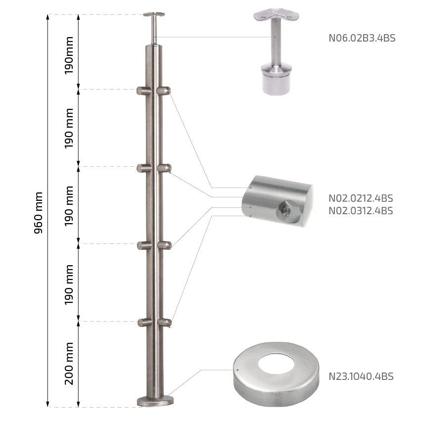 - Hauteur du poteau : 960 mm