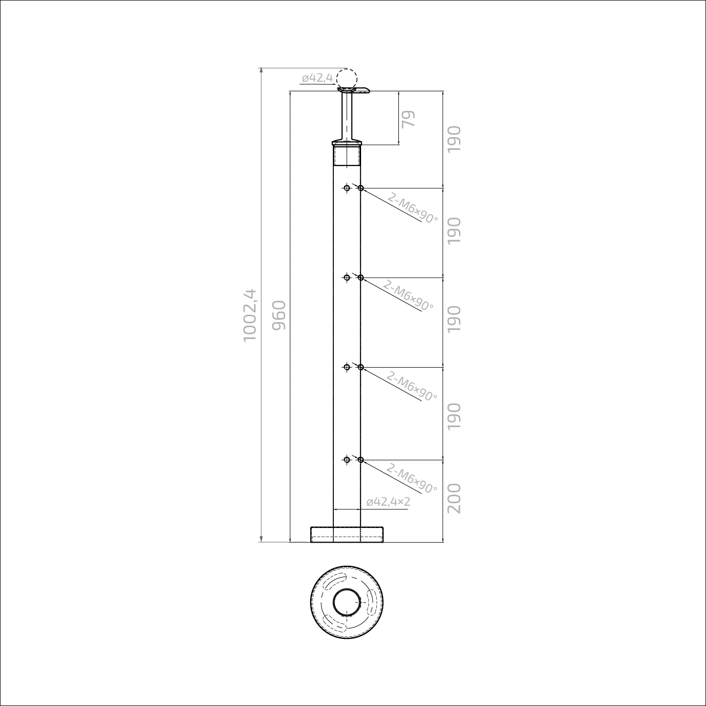 - Diamètre de la main courante : ø 42,4 mm