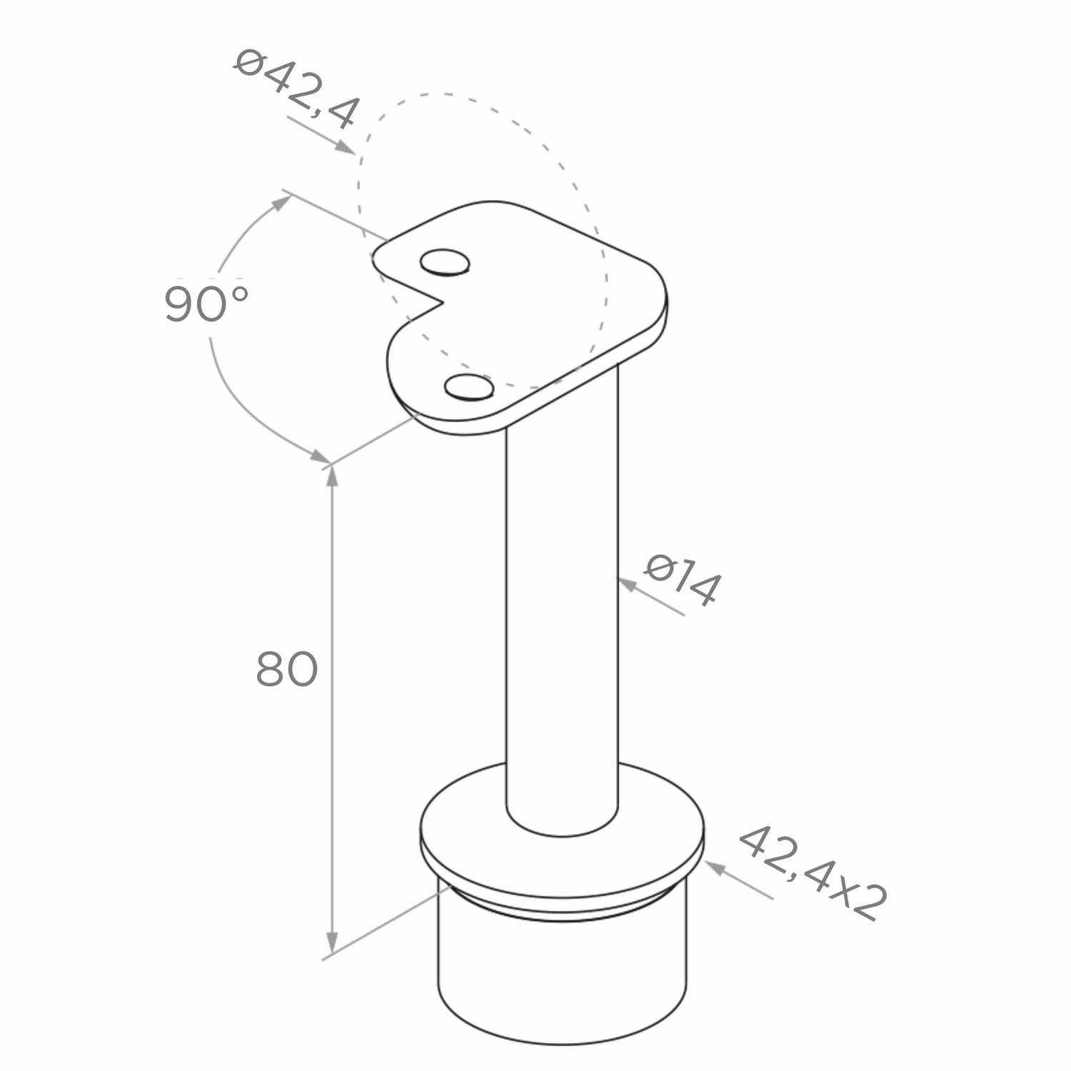 - Diamètre de la base (s'adapte au tube) : ø 42,4 × 2 mm