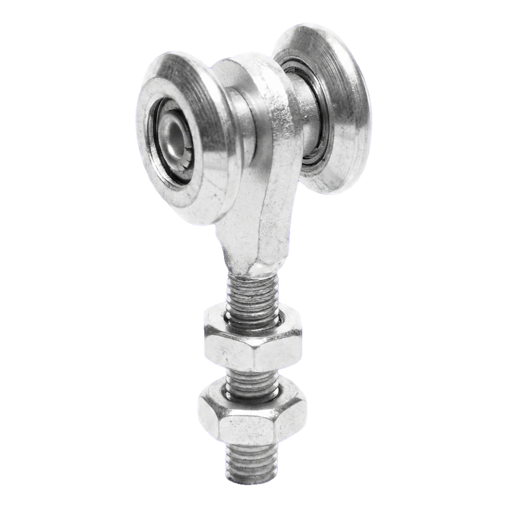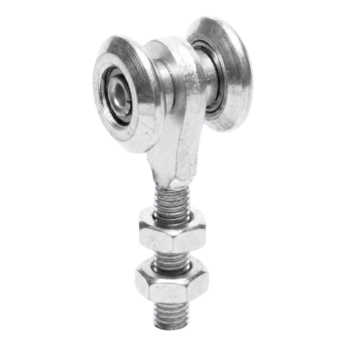 Le rouleau est destiné aux systèmes de portails suspendus, dans lesquels le vantail se déplace le long du rail supérieur. La tige filetée M8 avec double écrou permet l'ajustement de la hauteur de suspension du vantail et une fixation sûre dans le support du portail. Le revêtement galvanisé protège l'élément contre l'action de l'humidité et des facteurs atmosphériques, ce qui est important dans le cas d'un montage à l'extérieur — sur les clôtures, les portails d'entrée et les halls.