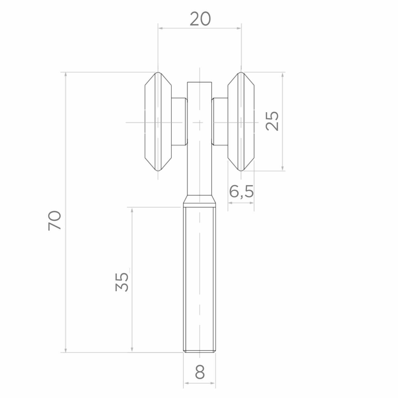 PSG – rouleau supérieur de portail avec deux galets de 25 mm pour portails suspendus