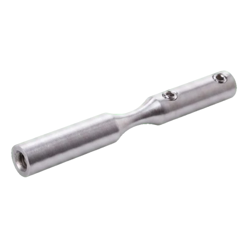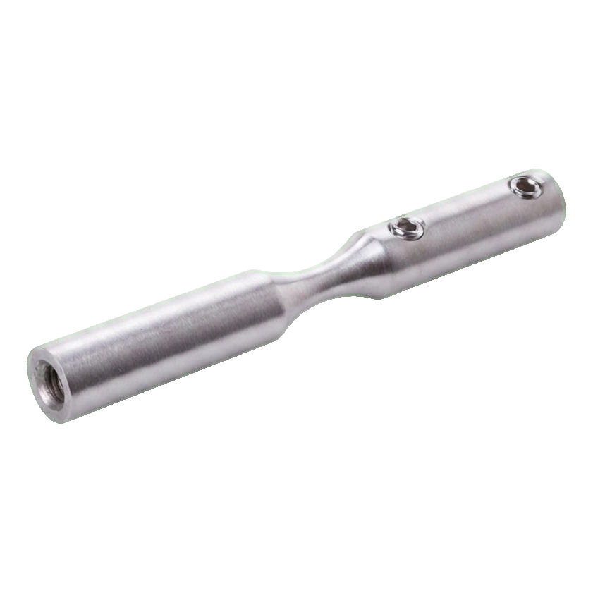 Élément fabriqué en acier inoxydable AISI 304 avec finition satinée assure une haute résistance à la corrosion et un aspect esthétique discret. Le montage s'effectue par vissage — le support est équipé de filetages M6 et de trous de blocage (Ø6 mm), ce qui garantit une connexion stable et durable avec le câble et la structure porteuse.
