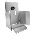 Le support est équipé d'un amortisseur en caoutchouc absorbant les chocs du rail lors de la fermeture du portail, ce qui protège le mécanisme contre les dommages et réduit le bruit. Les trous de montage en forme de haricots permettent le réglage de position du support après montage, ce qui facilite considérablement l'alignement du portail dans l'axe de guidage. Les ailettes latérales écartées servent de guides d'orientation du rail, assurant un engagement fluide et sûr même en cas de léger écart de trajectoire du portail.