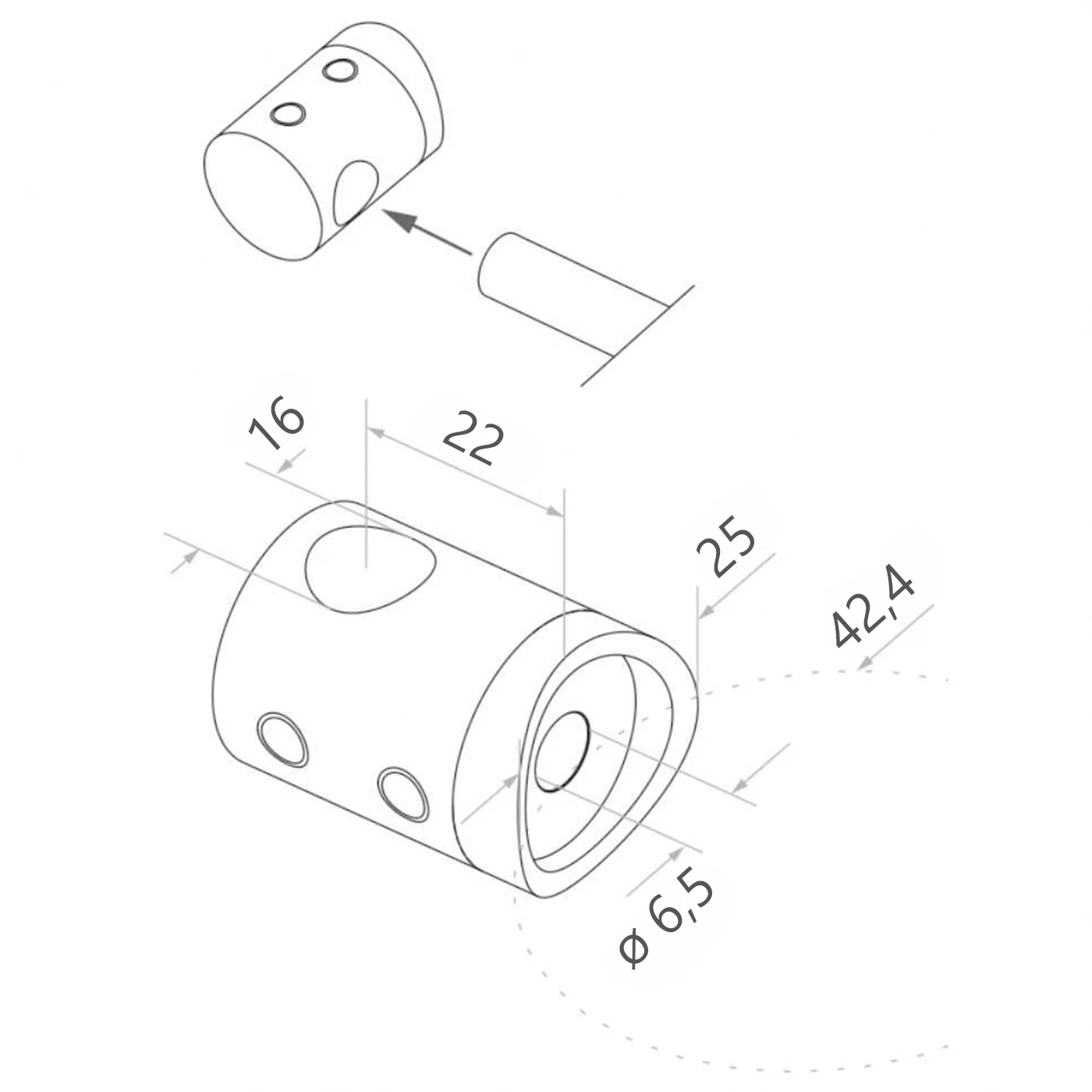 - Distance d'axe du perçage depuis la base : 22 mm