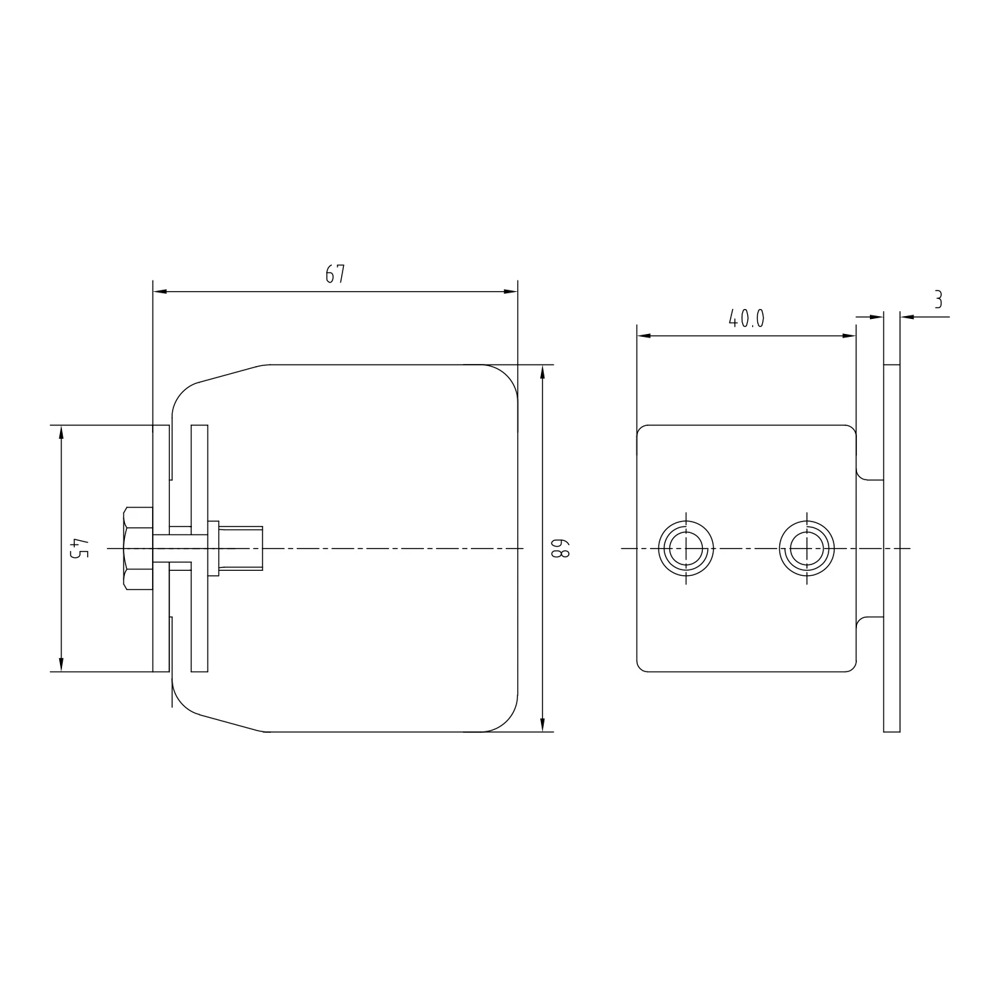 - Largeur de la plaque frontale : 67 mm