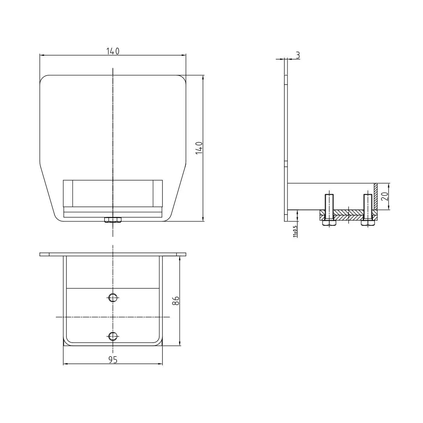 La terminaison de rail de roulement pour portail coulissant est un élément de montage en acier conçu pour un rail de dimensions 140 × 140 mm. Elle ferme et sécurise l'extrémité ouverte de la voie de roulement, protégeant l'intérieur du profilé contre les contaminants — sable, petites pierres et précipitations. Grâce à sa construction solide en acier, l'élément conserve sa pleine fonctionnalité même lors d'une exploitation intensive de portails coulissants plus lourds, minimisant le risque de déformations et d'usure prématurée.