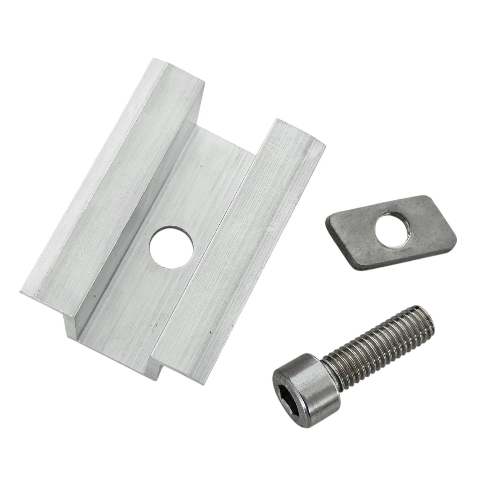 Clame de serrage centrale H25 L50 avec vis M8x20 et insert en aluminium 6060, pour le montage de modules photovoltaïques de 30 mm à l’aide de vis DIN 912.