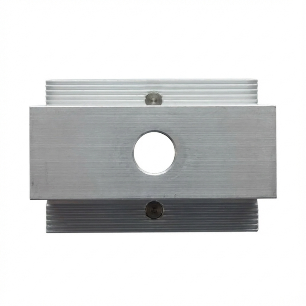 La pince de serrage intermédiaire H25 avec pin de mise à la terre est un élément de montage professionnel, destiné à la fixation de modules photovoltaïques avec une hauteur de cadre à partir de 30 mm. Fabriquée en alliage d'aluminium de haute qualité 6063-T66, elle assure une fixation durable et sécurisée des panneaux solaires sur la structure porteuse. La surface de l'élément reste brute, sans revêtements de protection supplémentaires, ce qui permet une équipotentialité précise et fiable entre les éléments de l'installation.