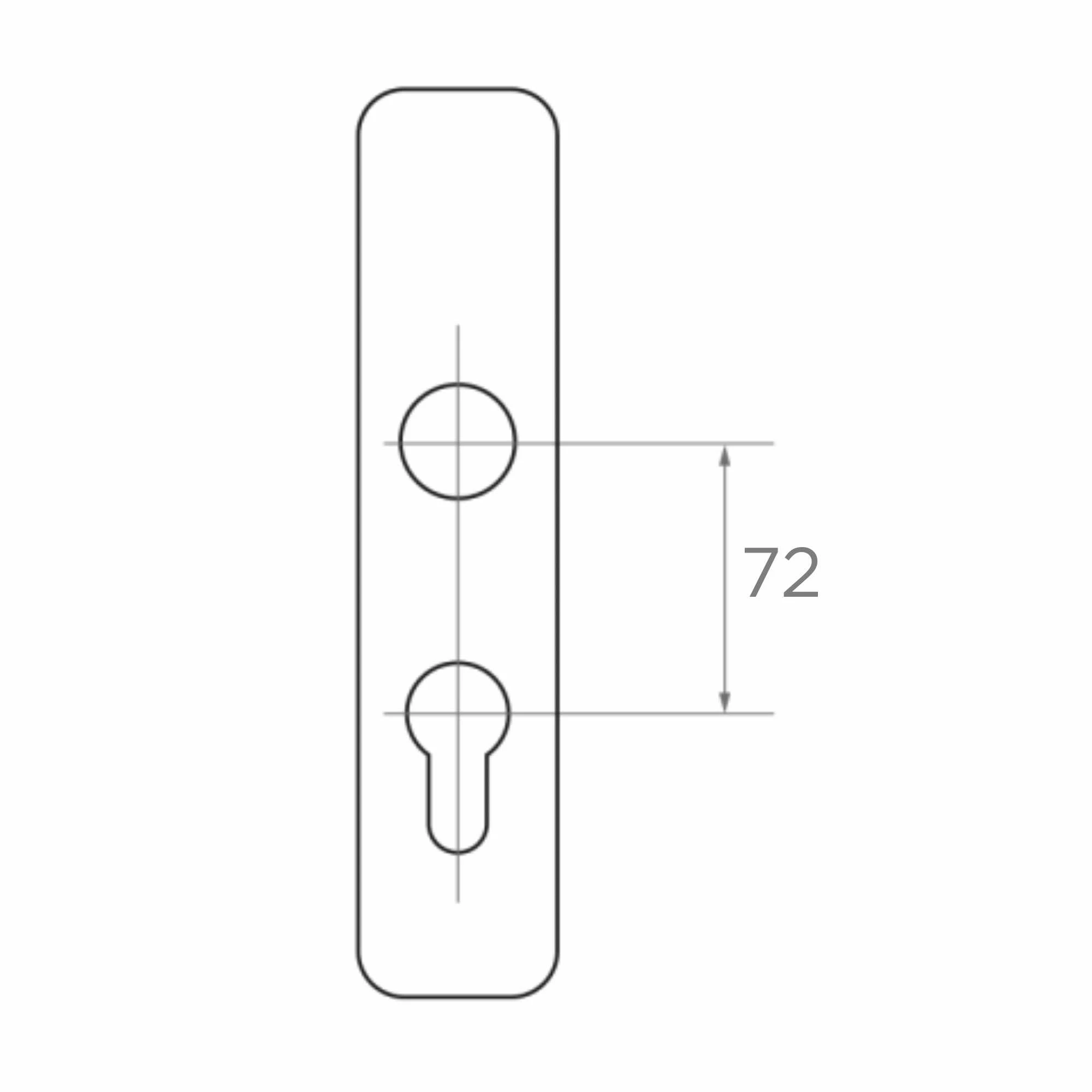 - Entraxe poignée–cylindre : 72 mm