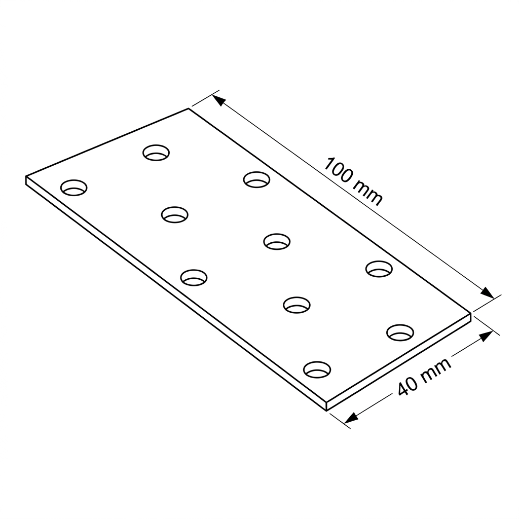 La perforation universelle aux trous régulièrement répartis permet d'utiliser la plaque dans de nombreuses configurations d'assemblage — aussi bien symétriques que décalées. Le format compact 40×100 mm avec une épaisseur de 2,0 mm rend le connecteur suffisamment résistant pour les applications courantes de charpenterie, tout en étant facile à stocker et à transporter, même en grandes quantités.