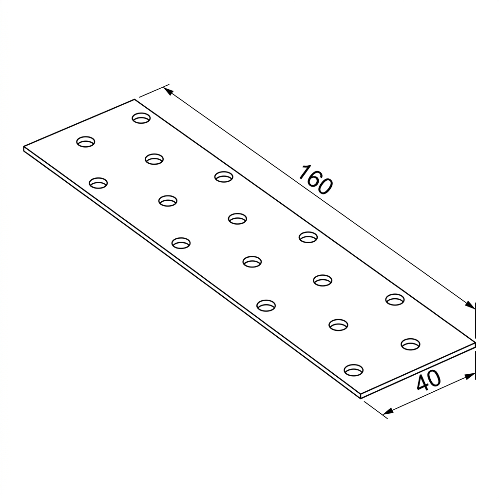 La plaque perforée en acier 40×160 mm est un connecteur charpentier universel destiné aux assemblages durables d'éléments en bois dont les faces latérales se trouvent dans un même plan. Fabriquée en tôle d'acier galvanisée d'une épaisseur de 2 mm, elle offre une résistance mécanique élevée et une protection anticorrosion efficace — idéale pour la pose de fermes de toiture, de sous-structures en bois et partout où un assemblage fiable et rapide de deux surfaces planes est nécessaire.