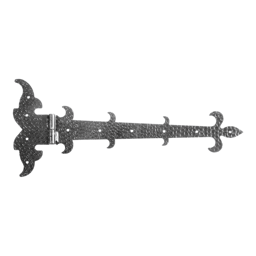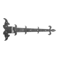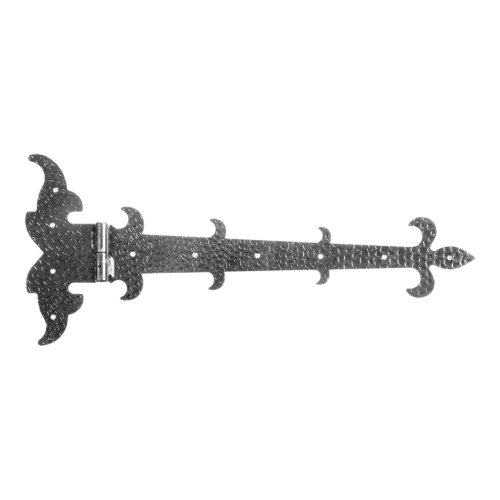La charnière décorative à bande gauche de marque Postal est un élément de ferrure en acier solide destiné au montage de portails, portillons et portes en bois. Grâce à son design décoratif avec motif de lys et sa surface à finition martelée, elle confère aux clôtures et portails un caractère stylé et rustique — parfaite pour les réalisations où le client recherche une esthétique traditionnelle.