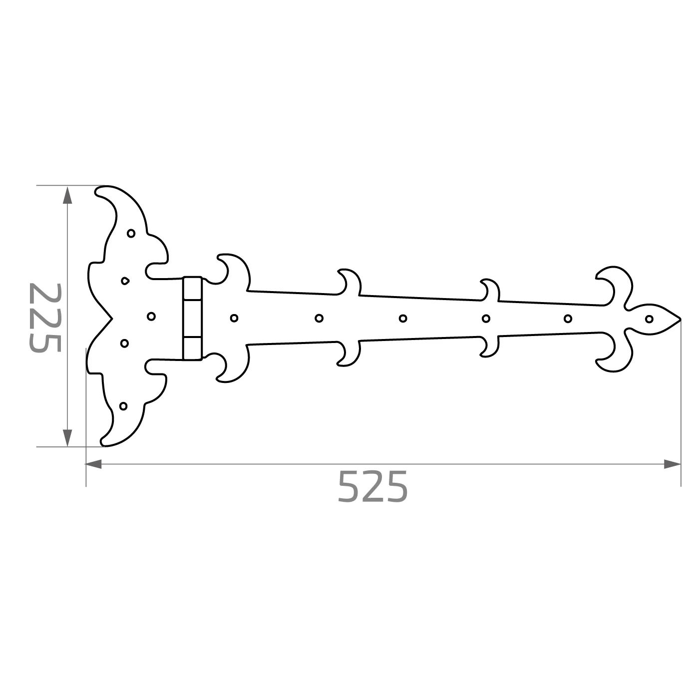 Postal – charnière décorative à bande gauche en acier 525 × 225 mm
