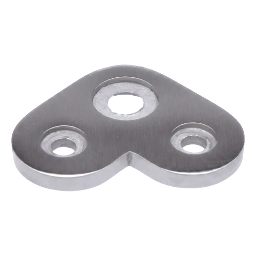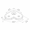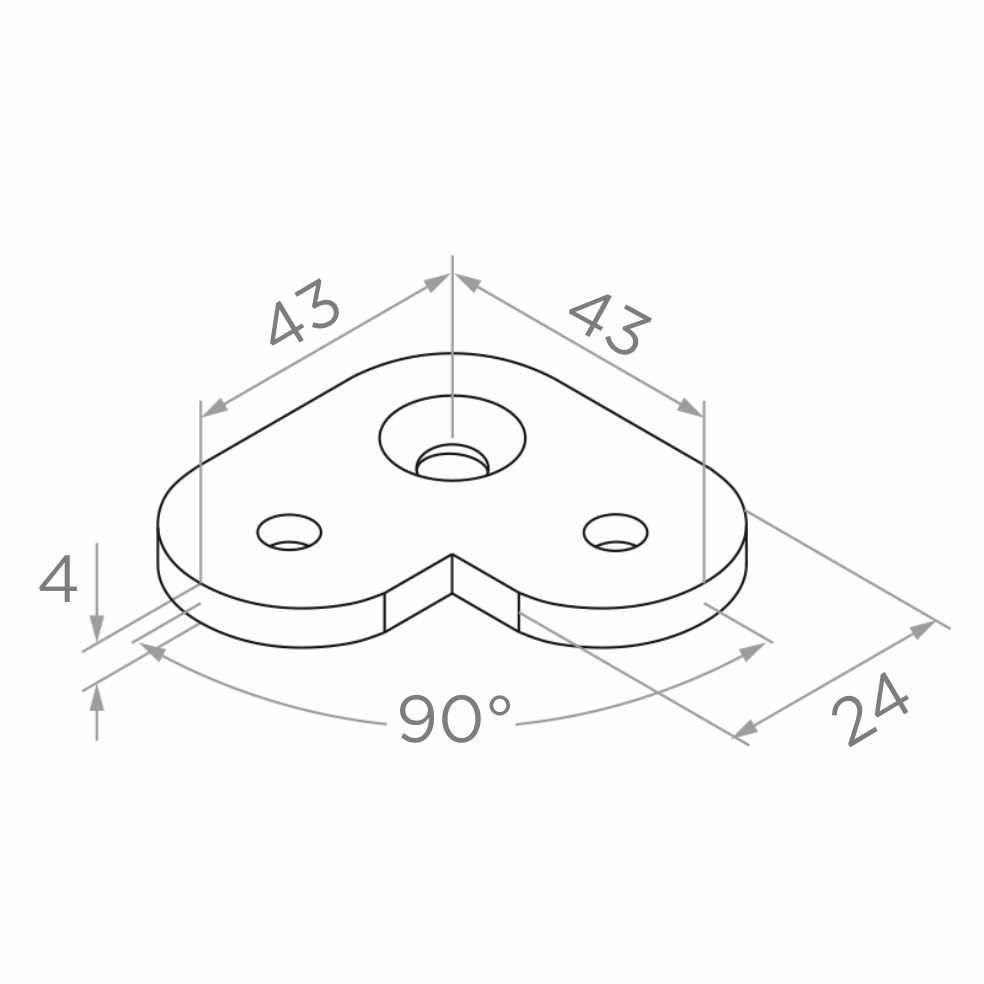 Équerre de montage angulaire pour système de mains courantes plates, destinée à la fixation des mains courantes par le dessus sur des surfaces plates à l'aide d'une vis. Grâce à sa forme compacte en cornière 90° et à ses trois trous de montage, elle assure une liaison angulaire stable et esthétique des éléments de balustrade.