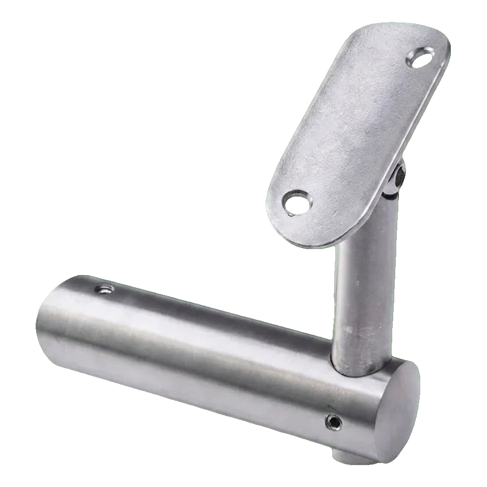 La fixation axiale articulée de la marque Postal est un connecteur solide conçu pour raccorder le poteau d'une balustrade inoxydable avec la main courante dans un système de tubes Ø 42,4 mm. Grâce à sa construction articulée, elle permet un réglage fluide de l'angle d'inclinaison de la main courante, ce qui facilite considérablement le montage sur les escaliers et rampes à angle variable.