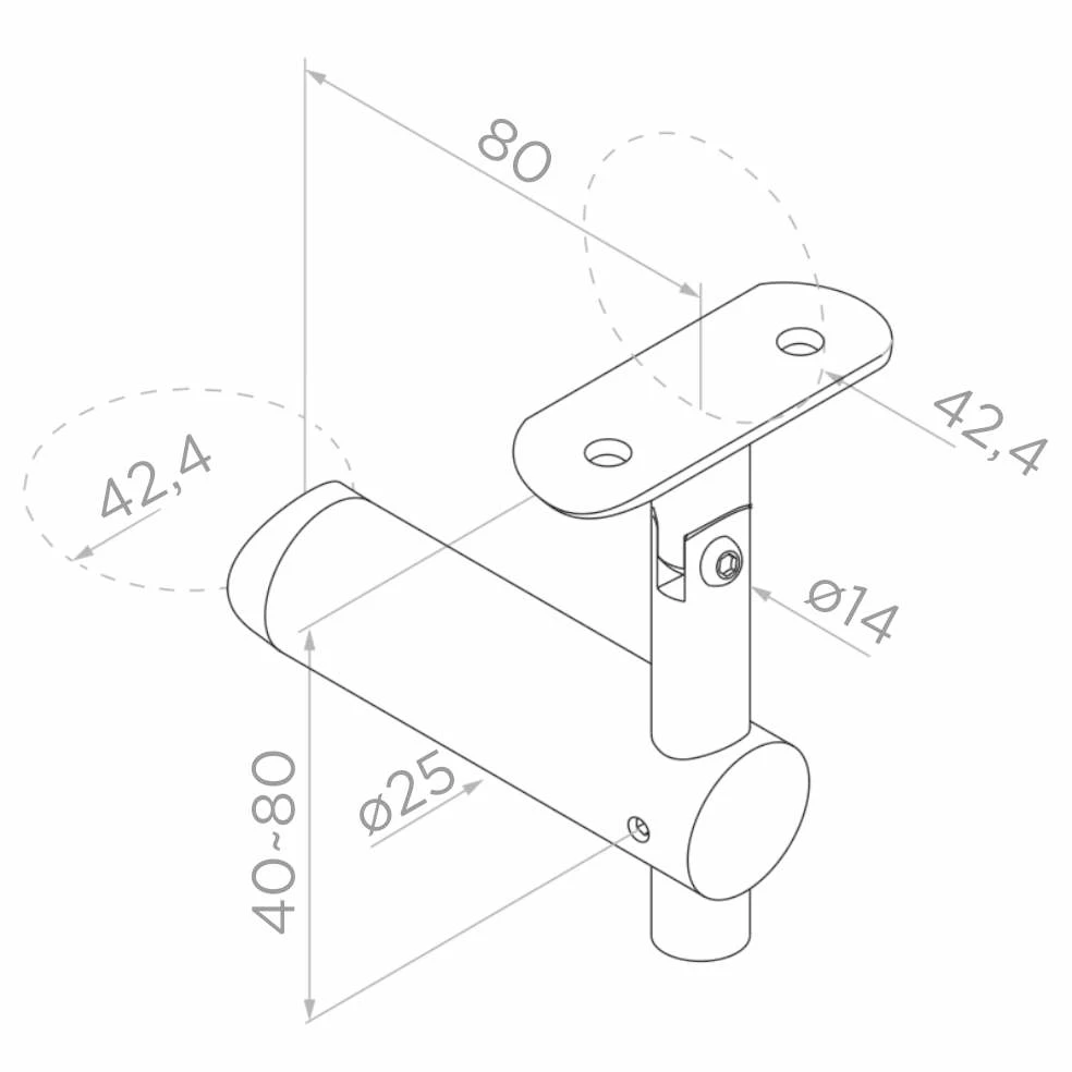 Le connecteur articulé permet de régler librement l'angle optimal de la main courante de balustrade — il ne nécessite pas de découpe précise des tubes en angle ni l'utilisation d'éléments de réglage supplémentaires. Le montage se résume à l'emboîtement sur le poteau Ø 42,4 mm et au serrage de la vis à six pans creux, ce qui réduit le temps de travail sur le chantier.
