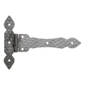 Paumelle décorative à bande Postal en forme de T est un élément de quincaillerie solide en acier destiné au montage de portails, portillons, portes en bois et autres constructions où l'esthétique est importante en plus de la fonctionnalité. La surface décorative martelée donne à la paumelle un caractère de forge, idéal pour les stylisations rustiques et traditionnelles.