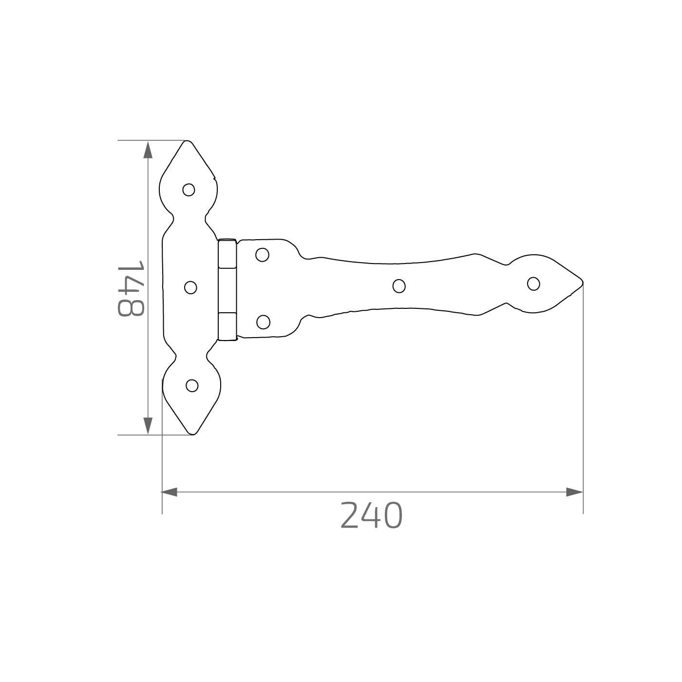 - Type : paumelle décorative à bande (T-hinge)