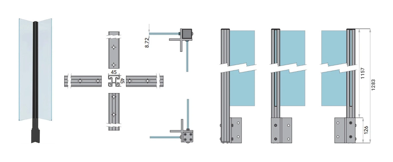 - Section du profilé : 45×45 mm — rigidité et stabilité élevées aux points d'angle