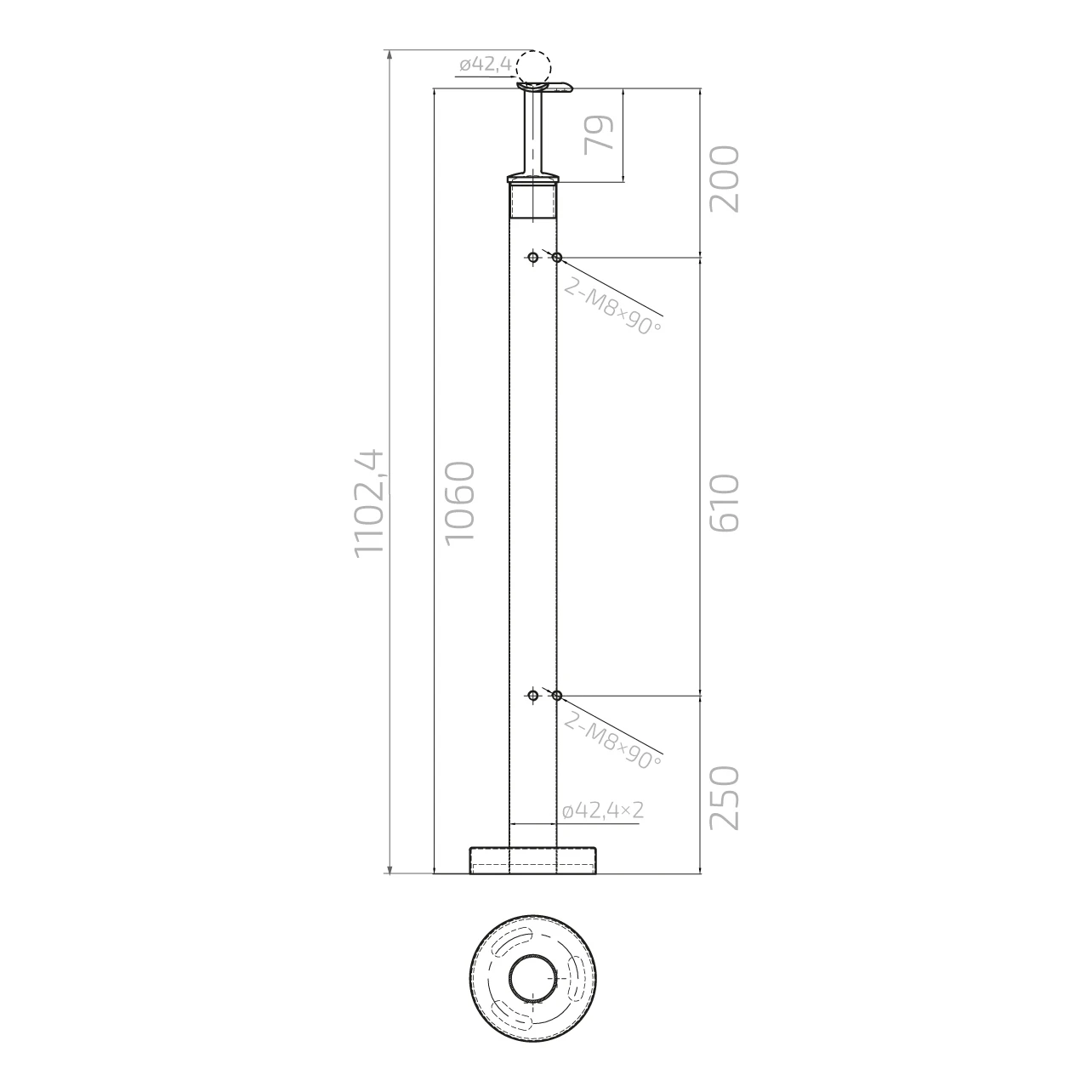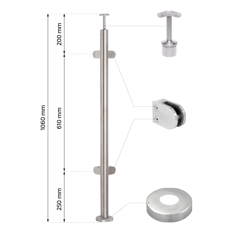- Diamètre de la main courante : ø42,4 mm