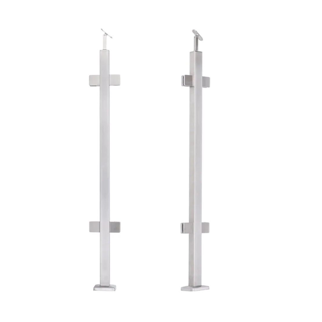 Poteau de balustrade intermédiaire acier inoxydable 40×40×1060 mm – 4 pinces pour verre