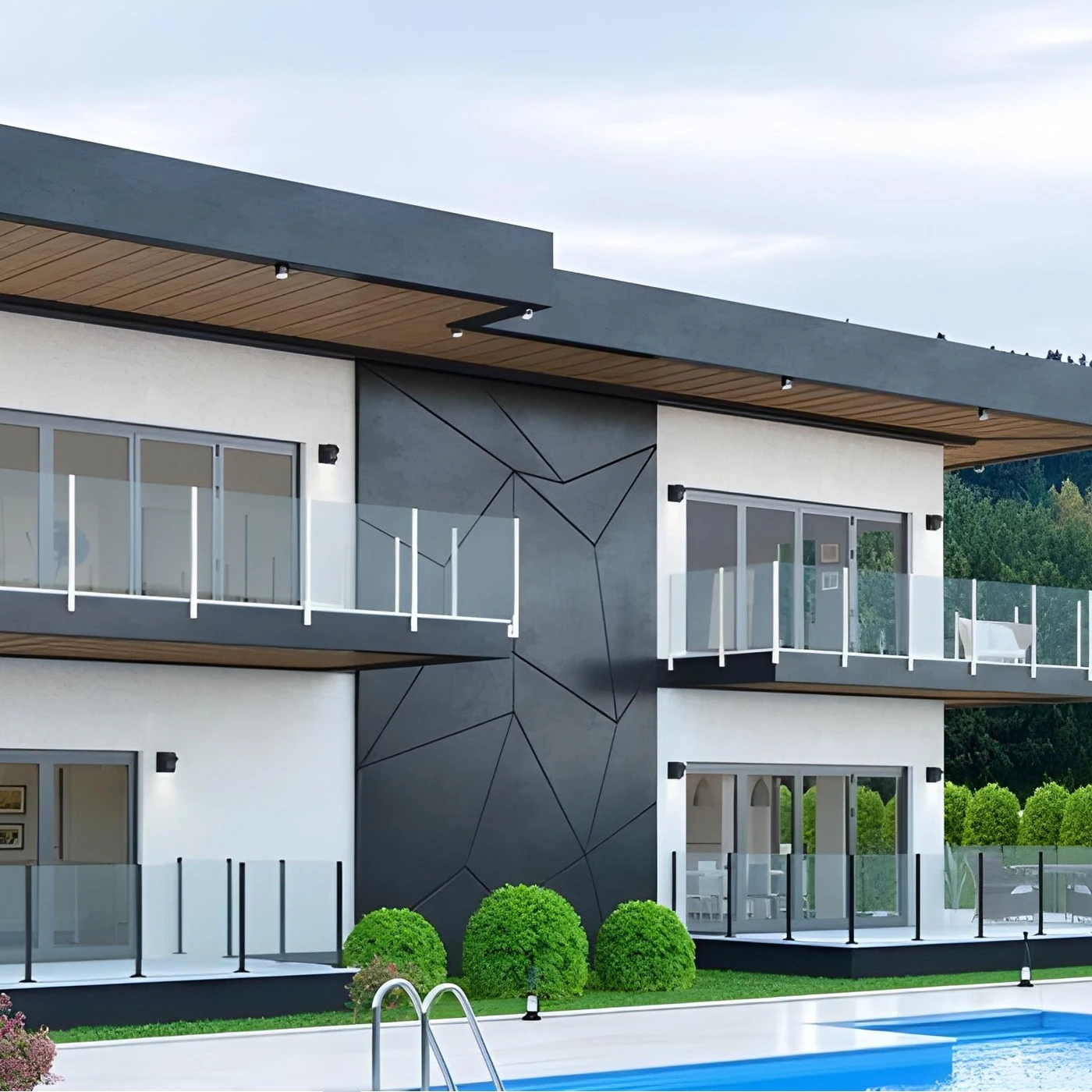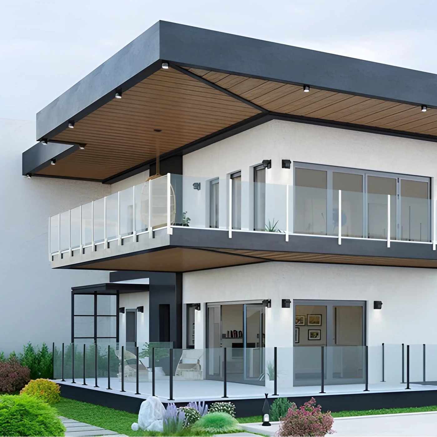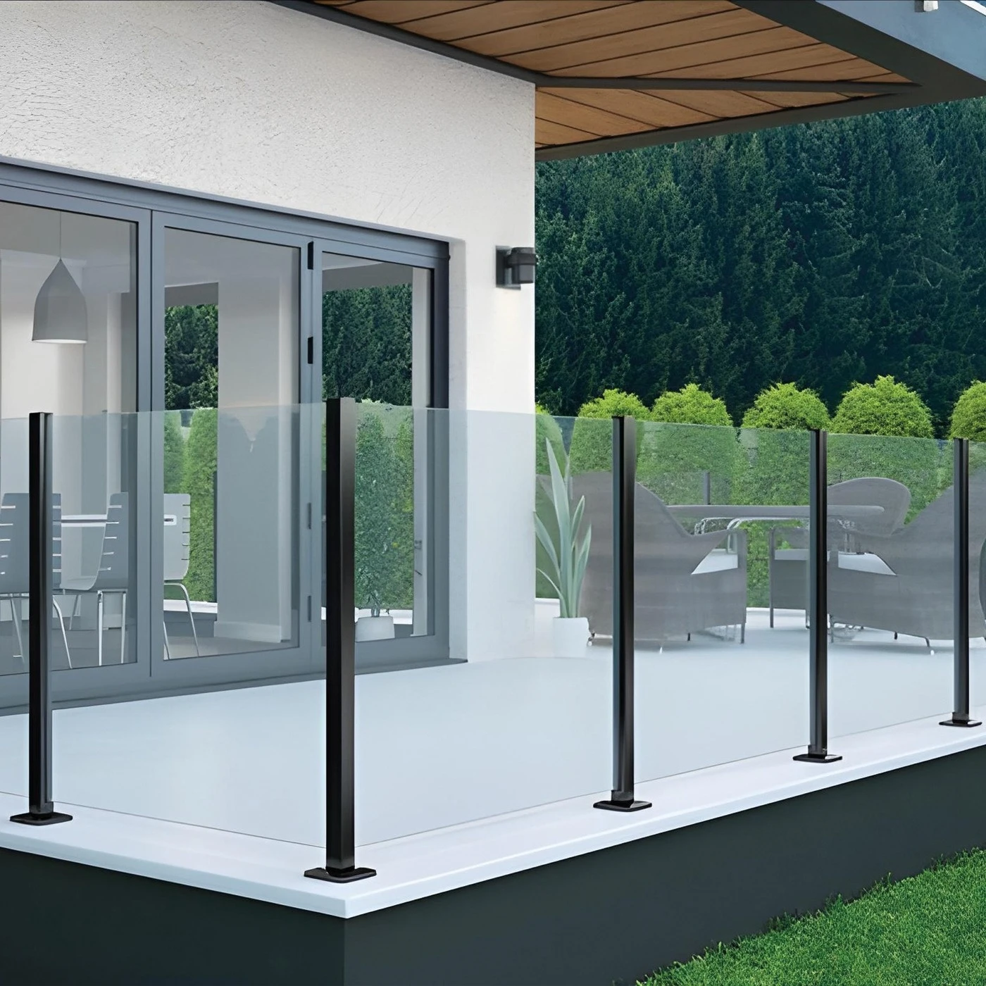Le poteau intermédiaire Kozza convient partout où le projet prévoit des balustrades en verre — sur les balcons, terrasses, escaliers, mezzanines, ainsi que dans les objets commerciaux : restaurants, cafés, hôtels et espaces publics. Les panneaux de verre transparents montés dans le profil donnent une légèreté optique à l'espace, et le profil noir mat constitue un accent visuel élégant, s'accordant aussi bien aux aménagements minimalistes qu'aux plus expressifs.