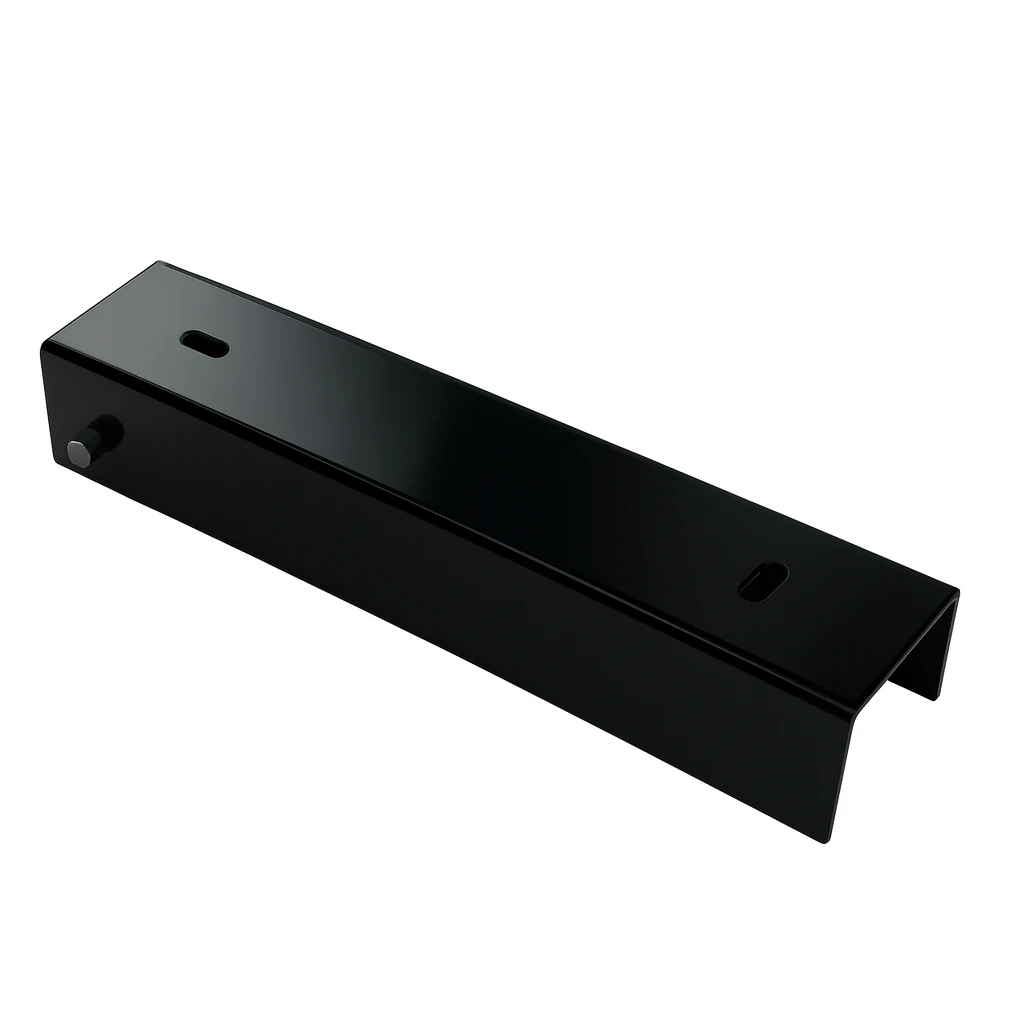 Profil en U connecteur support pour soubassement 200x50 noir est un élément de montage solide et fiable, conçu pour une connexion durable des plaques de soubassement en béton avec les poteaux de clôture.