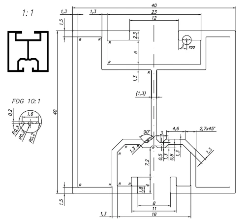 | Profil [mm] | 40×40 |