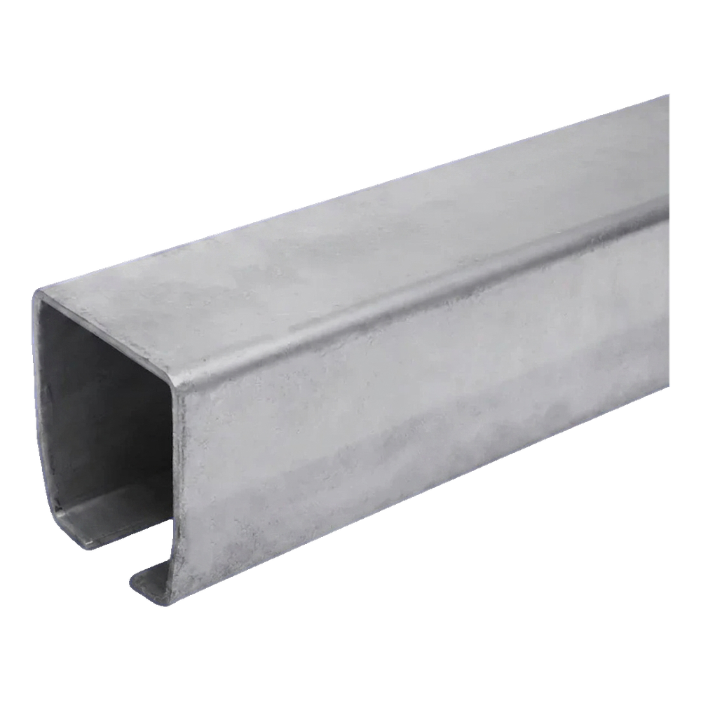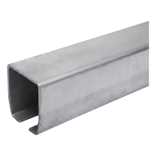 - Profilé en C de précision — compatible avec les rouleaux de roulement populaires pour portails coulissants
