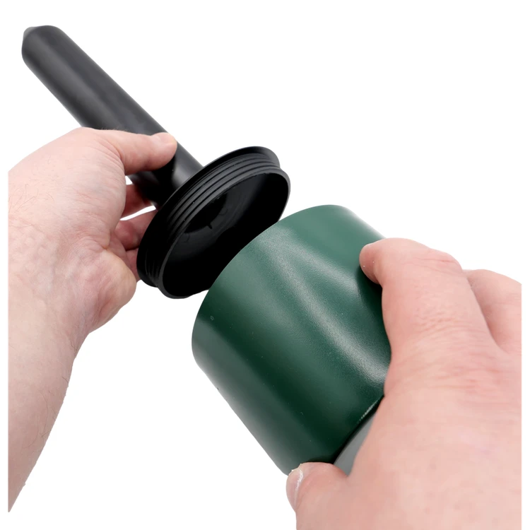 Installation simple en quelques étapes. Il suffit de dévisser la tete, d'allumer l'appareil avec l'interrupteur POWER, de revisser la tete, puis de visser délicatement le piquet dans le sol. Lors de la premiere installation, il est recommandé de faire un trou vertical dans une taupiniere a l'aide d'un bâton ou d'une tige. Apres installation, la tete doit dépasser d'environ 5 cm au-dessus de la surface du sol. L'appareil fonctionne en continu jusqu'a ce qu'il soit éteint ou que la batterie soit déchargée.