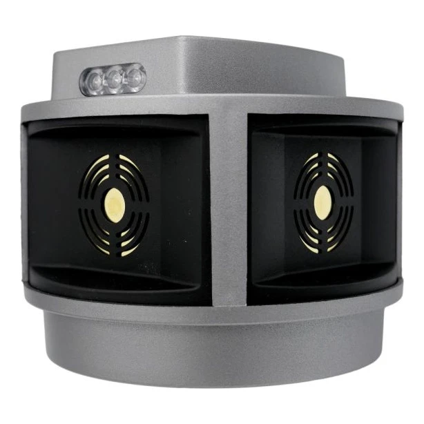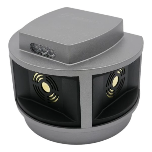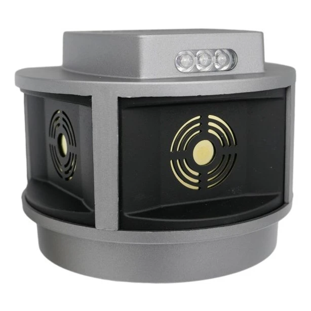 TRIO-STROB est un répulsif a ultrasons avancé qui protege efficacement les bâtiments contre les martres, belettes, rats et souris. Trois émetteurs piézoélectriques professionnels de 50 mm de diametre, disposés perpendiculairement dans trois directions, assurent un angle d'émission d'ultrasons allant jusqu'a 270° et une portée jusqu'a 200 metres, couvrant une surface effective jusqu'a 3000 m2.